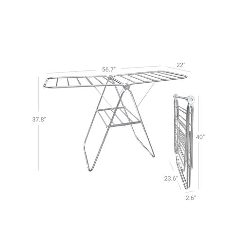 FOLDABLE FOR EASY STORAGE: Fold the drying rack down to a flat of 23.8" x 39.8" x 2.9" for easy storage and transport; tuck it out of sight between uses to save space